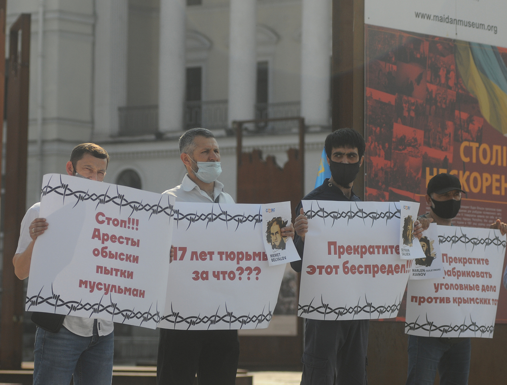 "Stop arrests, searches, tortures": Participants of the action to support political prisoners of the Bakhchisarai case "Hizb ut-Tahrir". Shuttherstock.com
