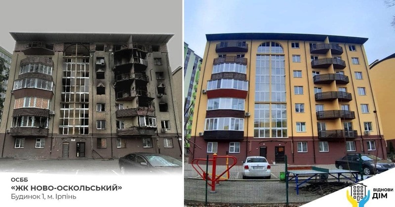 The Zatyshnyi 2020 and Novo-Osokolskyi Residential Complex Housing Cooperatives in Irpin, which became the First Participants of the VidnovyDIM (RestoreYourHOME) State Program under the Energy Efficiency Fund. Pictured before and after Restoration