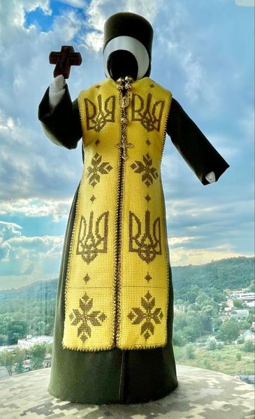 The artist who crafted the chaplain's doll shared her story: "During drone and missile attacks on our city, I hid with my children, holding onto the doll. I longed for the day the exhibition would open, worried a missile could hit at any moment, not only us but my art too."