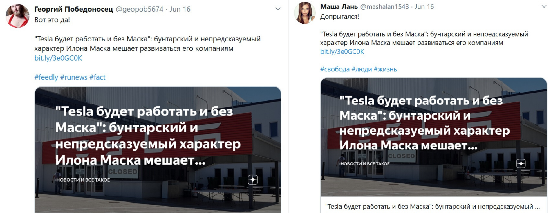 It is often very difficult to figure out who exactly is behind a troll army, but we were able to do so in this case. The clearest indication is that the trolls/bots exclusively share articles from the ObninskChess page on Zen.yandex.ru