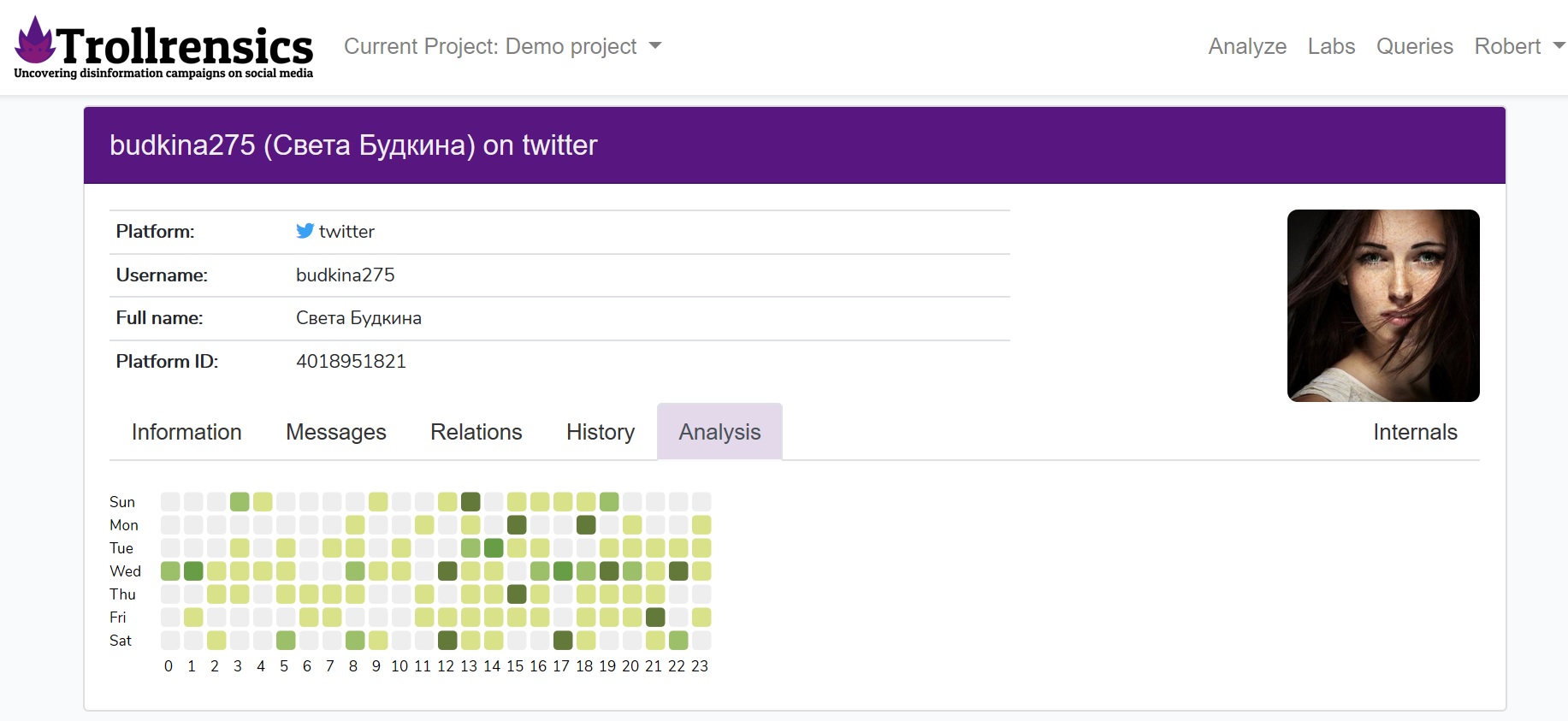 Using several reverse image search engines shows that the profile pictures are ripped from elsewhere. Budkina’s picture can be found on many different sites. The handles are unusual, and this suggests that the creator of this army wasn’t very creative. For example, we can also see handles like bukina275, balkina275, and zorkina275.