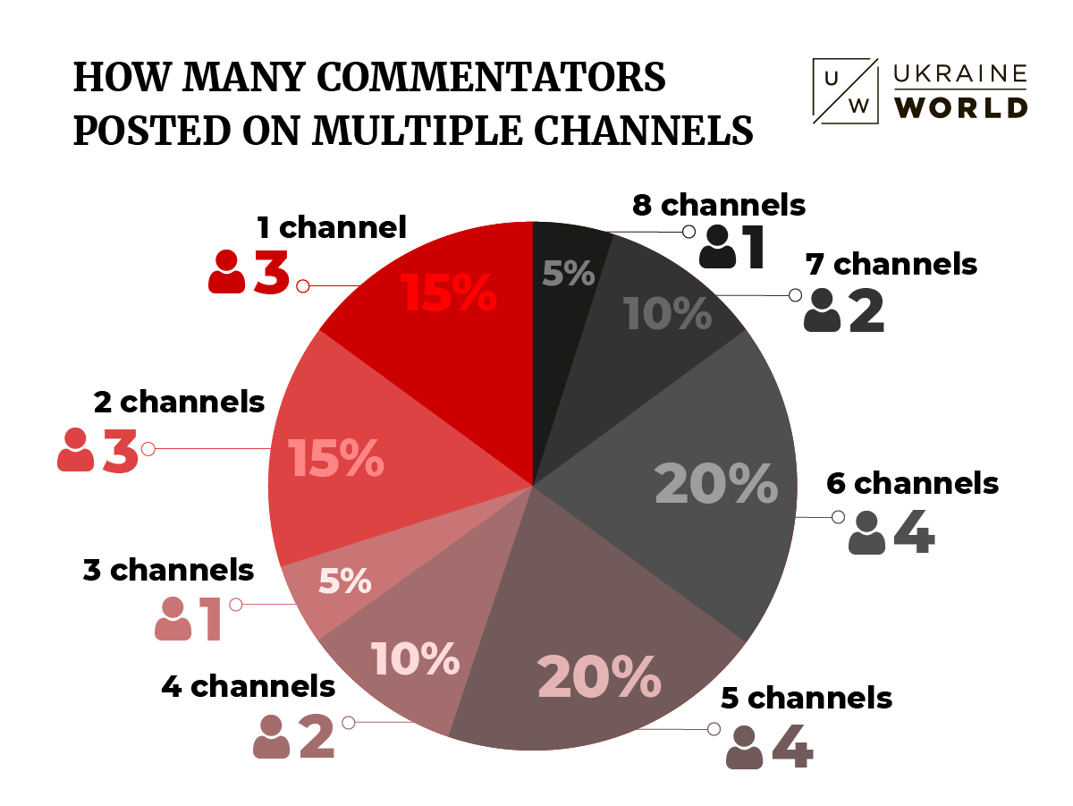 YouTube comments can be even more engaging than videos themselves. People (or trolls and bots) who comment with the same messages contribute to building up a "bubble" for people to think that the anti-Western and pro-Russian position is the only proper one. The most active commenters on the channels we studied help to create such a "bubble."