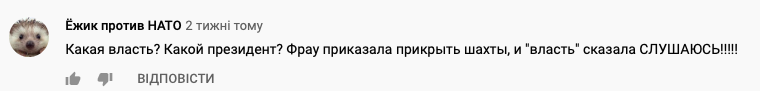 Some of the trolls are more specific. For instance, user Ёжик против НАТО (Hedgehog against NATO), who mostly comments under the videos of 112 Украина (112 Ukraine), actively shares a narrative that the Ukrainian government is being controlled by the EU and NATO. This is an example of a comment from this account: