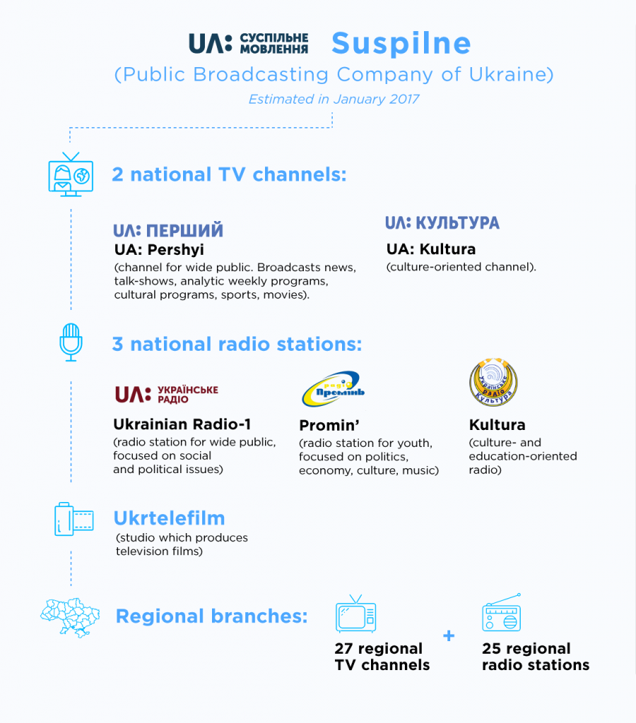 Historically, Ukraine's state-owned media was fully dependent on government funding and its assets were disconnected. More than thirty state-owned TV channels and radio stations across the country had limited cooperation, no common development strategy, and were financed separately. The debate surrounding the creation of a public broadcaster has been ongoing since 1997, but the situation only began to change after 2014.