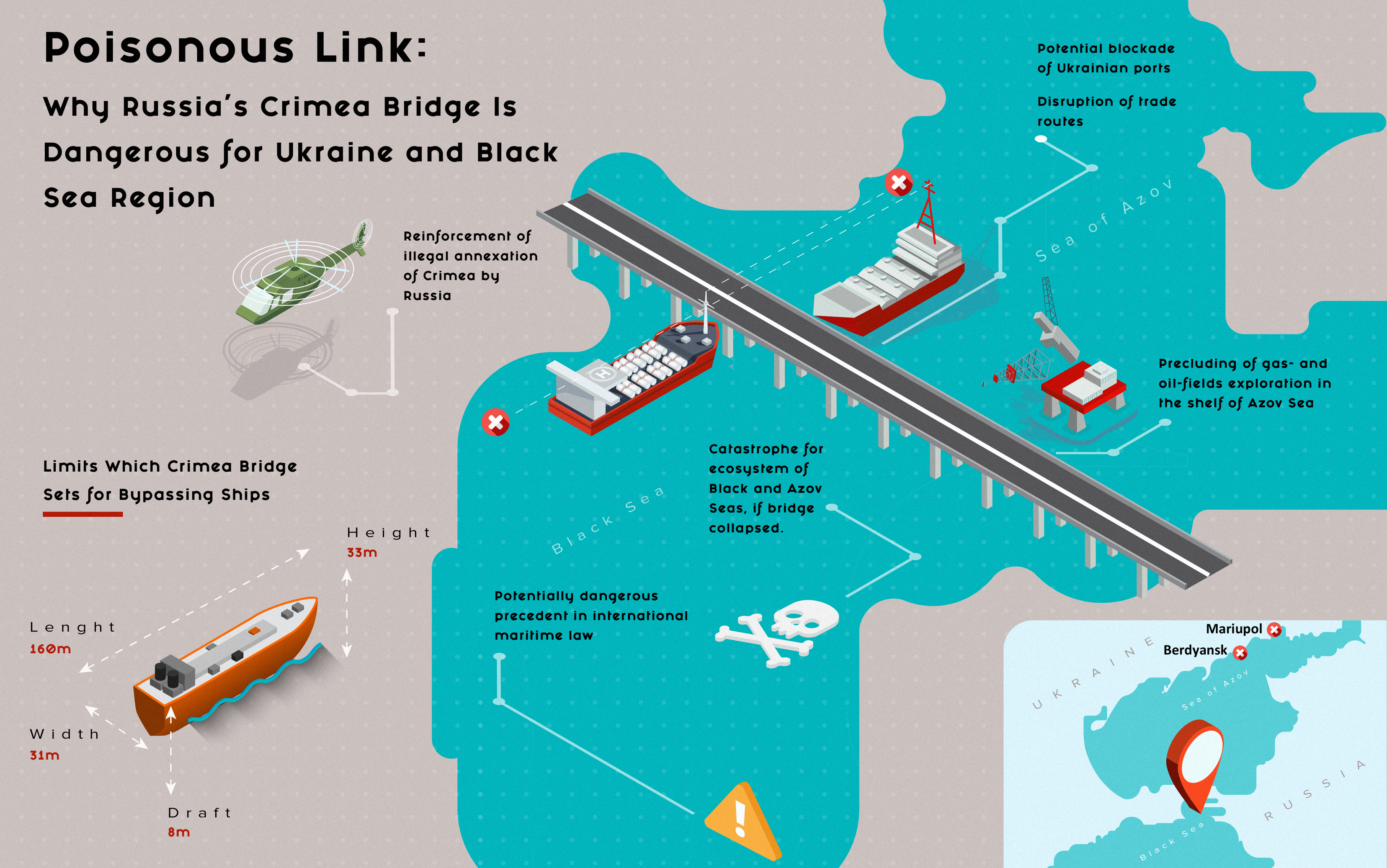 Putin's imperial ambitions and vanity have pushed him to rush the Crimea bridge project. Hopefully, haste and corruption during the construction works will not cause its destruction. However, the damage to the region of the Black and Azov Seas, as well as to the Ukrainian economy, has already been done.
