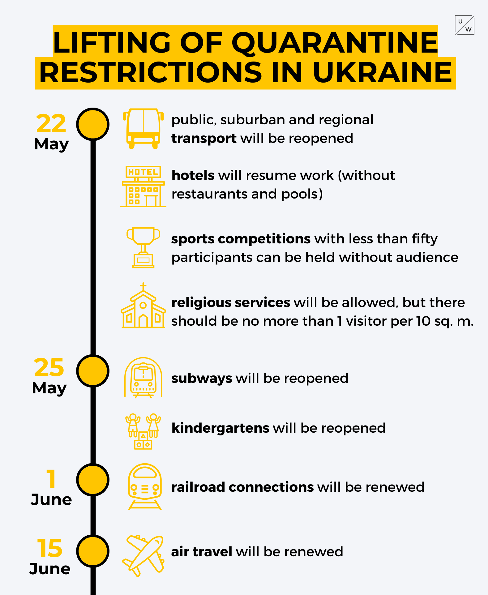 22 May, 15:25 - The second stage of quarantine mitigation has begun today. Below are several stages of lifting the restrictions if the epidemiological situation allows.