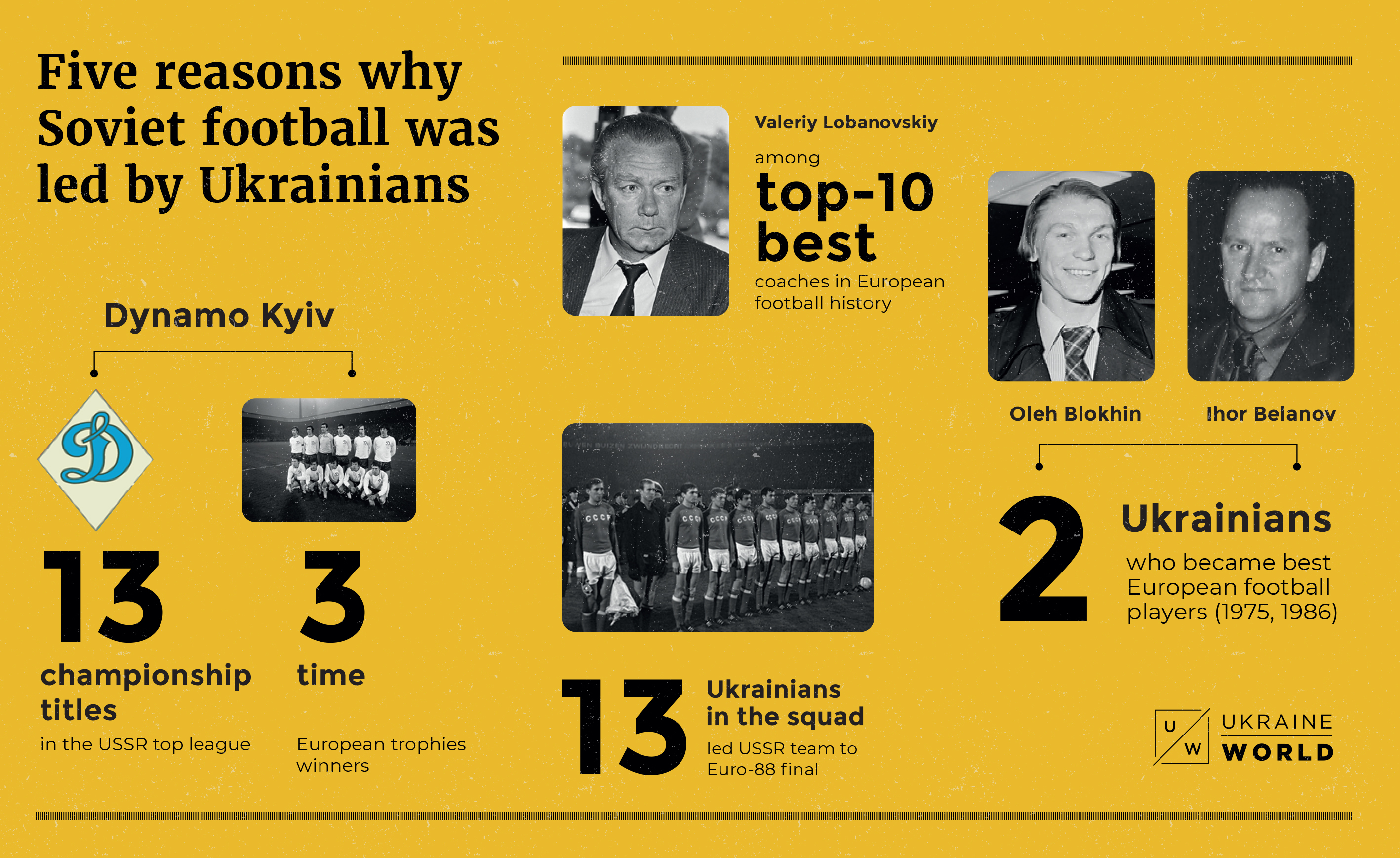 Thus, despite attempts made to blur the lines between nationalities in view of presenting sports and football advances as those achieved by the Soviet people, the football in the USSR of the 1970s-1980s was driven mainly by Ukrainian teams and performers. Dynamo Kyiv and the club's outstanding talents of various Soviet epochs, as well as the genius of Valeriy Lobanovskiy, should and always will remain an integral part of Ukrainian and world sports history.